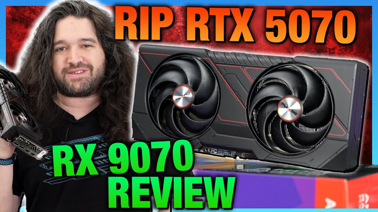 no today there's some real competition now the shortest version of this review up front is that the 970 XT and the 5070 TI go back and forth a lot depending on the game especially in rasterization rate tracing Nvidia still holds an advantage so the quick version is at 4K Ras without RT for the recap the 970 XT and the 5070 TI are often within 6% of each other on either side that's in F1 cyber Punk Resident Evil 4 Starfield Total War Warhammer 3 dragons DOA 2 f 1440p and 1080p we saw similar results depending on the game sometimes the 970 XD can close the gap a little bit if it's behind there sometimes it pulls ahead a little bit just depends on the situation now interestingly because the 5070 TI is basically a 4080 V is it 3 or four we're going to go with four it depends how you count the ti that was UN launched but anyway because basically a 4080 which is therefore basically a 480 super that means there's instances where the 970 XT is getting really close to the 4080 super I think there might have been one where it passed it but we'll talk about that in raay tracing it's all over the place so this is sort of the downside to it where Andy's got some real strengths of this one it's also got some real still present downsides so an RT AMD has improved massively over its prior generation the 970 XT definitely gets uplift over the 7,000 Series in most instances for RT Nvidia is fiercely competitive here still uh and AMD for example gets absolutely crushed in blackm myth who K with Ray tracing against Nvidia but it is actually more competitive now in mixed RT workload games or sort of mediumweight RT uh situations depending on what they are so nvidia's biggest strengths remain in its feature set generally rate tracing efficiency in particular power consumption is pretty effective for what's output the features get difficult to measure for example do we measure MFG as multiframe generation or as multi failure generation anyway that's the fastest possible recap of this review nvidia's had a busy 3 months destroying the hype that it built for the 50 Series it really had a lot of ups and downs that launched I mean for example on the positive side but on the negative side there's been things like the melting 12vt high power cables the missing RS the the missing RS on the other C that they didn't disclose until after they were discovered the paper launch the fact that the prices aren't real even from its own first parties the line on stage about the 5070 versus the 4090 and actually we're going to be here all day if we list all the issues so let's just move to the 970 XT review before that this video is brought to you by the montac hyperflow series of liquid coolers the montac hyperflow aims to compete with other affordable liquid coolers by fighting on price to Performance in our testing cooler performance was comparable to others in its class the AR argb hyperflow has an illuminated pump block with RGB LED fans that have quality rubber bumpers for vibration damping the cooler has a six-year warranty and supports all modern Intel and AMD sockets and you can learn more at the link in the description below we're to keep this one really focused today let's start with the basics and these are RX 970 and 970 XT launch the day after this video goes up we already posted separate videos going into the specs and the architecture of the cards so we'll link that below but the quick recap is this AMD has made major changes architecturally for the rdna 4 generation which is this one there's two cards there's the 97 in the 970 XD there's probably going to be another card later that's lower end the basic specs of the cards today might feel familiar to the Vega era the cards are divided by a 56 cuu or compute unit and a 64 cuu model with today's focusing on the 64 and no not that one we'll review the 9070 later today as well so check back for that later today for TDP AMD markets them as 220 Watt and 304 Watts with board Partners having room to scale beyond that we'll test this today as well AMD is using gdr 6 memory at 16 GB capacity at 20 GBS per second and on a 256bit bust for both cards the vram alone will be advantageous in heavier RT workloads something we talked about yesterday in the 5070 review the architecture's biggest overhaul that we're aware of has been in Ray tracing MD has doubled the ray intersection rate moved to two RT accelerated blocks with a shared 128 kiloby memory moved to bb8 and introduced oriented bounding boxes or obbs to reduce or eliminate false positives and ra triangle and Ray box intersections AMD has also introduced a dedicated Ray transform block to help with transformation and again this is all stuff that AMD really needs to improve on because Nvidia has successfully sort of manufactured a category it's really good at which is real-time R Trac in and Intel even again sort of makes AMD look bad in some of those situations with the 7,000 Series so they needed to make some ground here and uh and we'll be looking at that today now for pricing this is a little difficult lately because it's just like nothing but for the card that you might remember as being built entirely upon and lies 490 performance at 549 impossible without the Four Tops four ter Ops of AI we did a quick look at Newegg for what was in stock and it was there was nothing it was all gone so when we checked New Egg yesterday the only card that was between $450 and $650 sold first party and not refurbished was the 7800 XT this is madness and if it were about 10 years ago I'd probably kick a video card off the table and yell something about Sparta but Madness nonetheless there's just nothing there the 970 XT and the 970 both should be within this range tomorrow in theory so we'll have to check back for that they are also likely to get scalped like Nvidia what may help is that there are rumors of Greater Supply than the 50 Series and likewise they may be less desirable in the AI at home segment than the 509s for example so