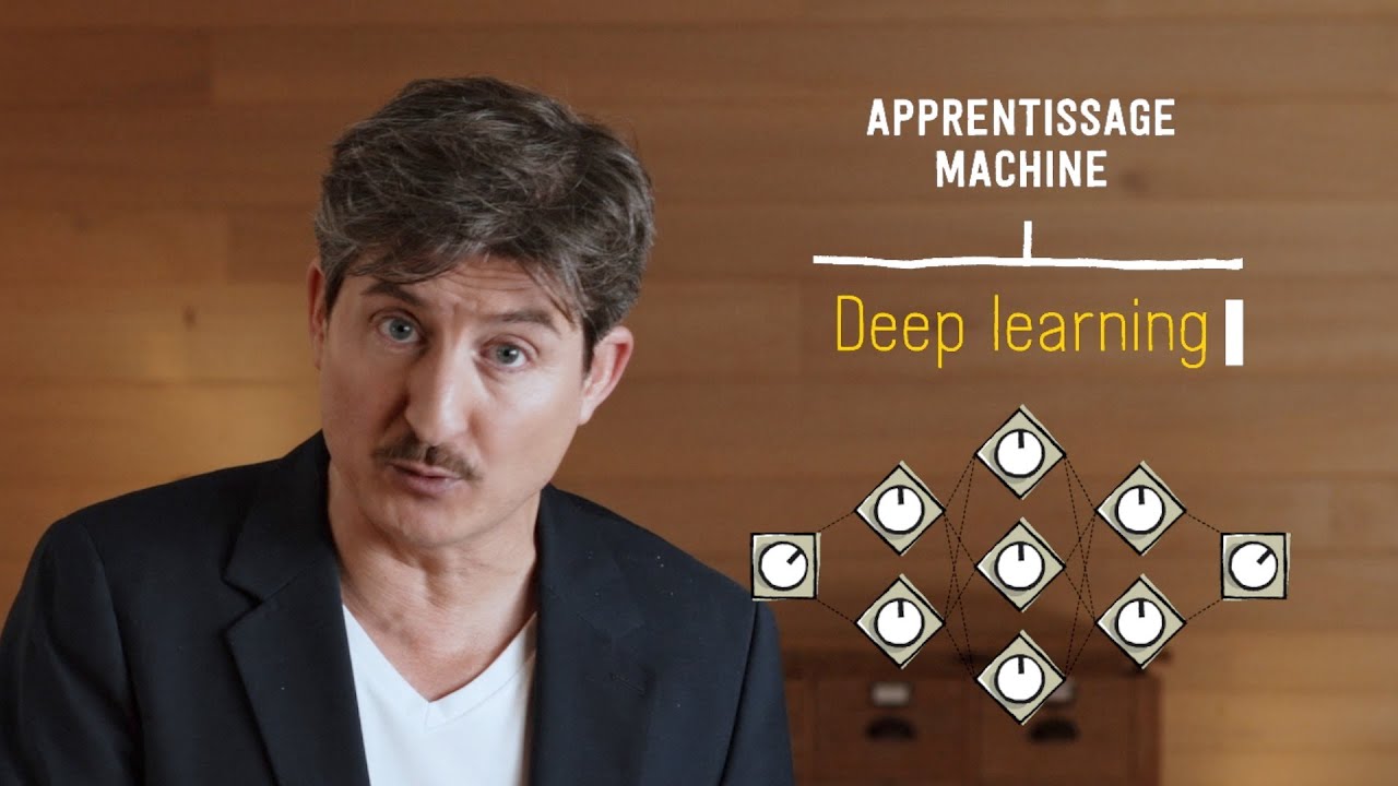 J’aurais beau vous expliquer comment faire du vélo c’est en pédalant que vous saurez pédaler. Il faut que vous en fassiez l’expérience Ca, c’est l’autre approche l’approche numérique ou connexionniste qui elle, tente d’imiter comment l’humain apprend par essais et erreurs à partir de ses expériences C’est cette approche-là qui est sur le devant de la scène aujourd’hui Vous savez, l’apprentissage machine et les fameux « réseaux de neurones ». Ok, mais t’as toujours pas répondu à la vraie question c’est quoi l’intelligence ?