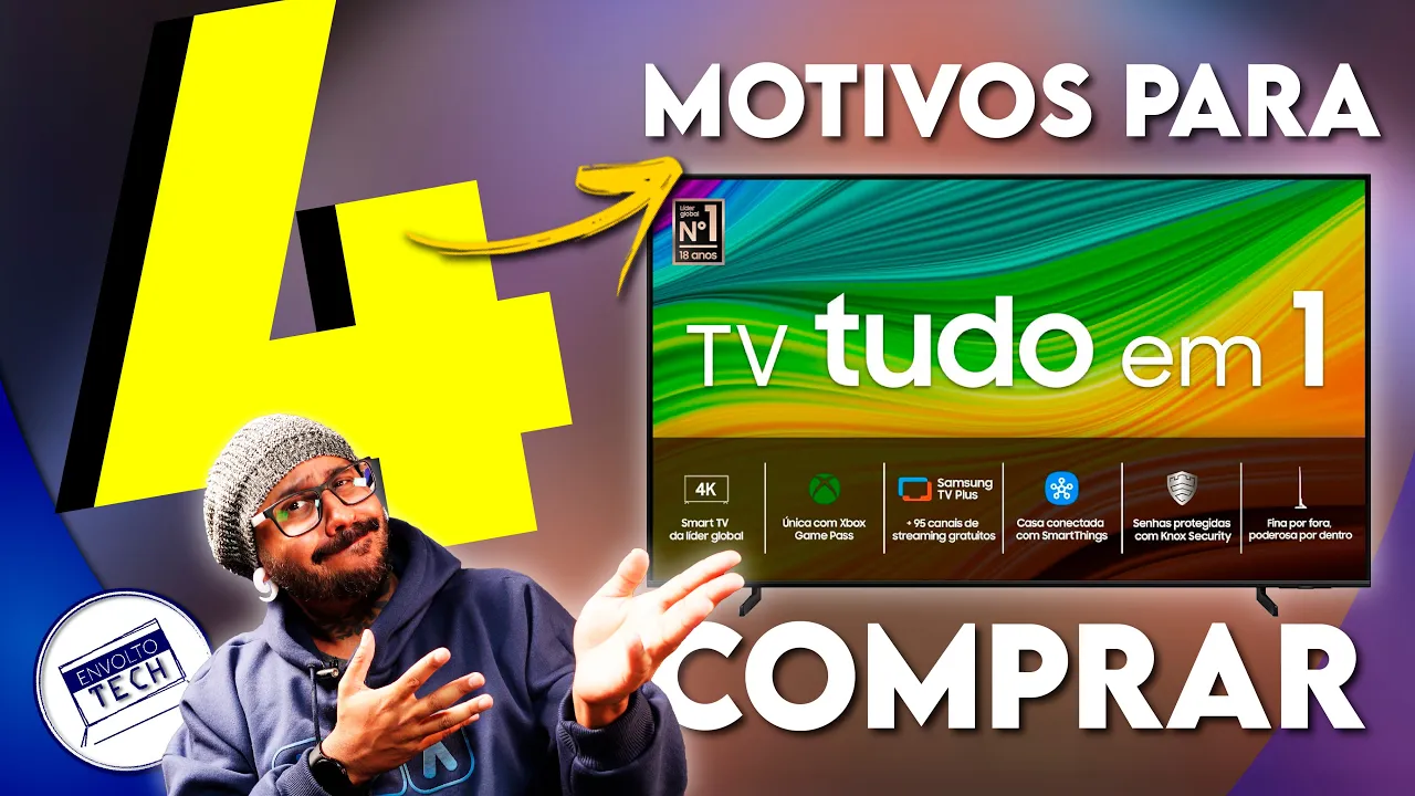 [Música] uma das melhores TVs com resolução 4K lançadas em 2024 e muito por conta do seu custo benefício ou seja pelo que ela custa o que ela entrega é o modelo q60 D da Samsung e se você tá em busca de uma boa TV que entregue uma boa experiência mas custe um valor ali mas amigável nesse vídeo eu te mostro quatro motivos do porquê vale a pena investir nessa TV o meu nome é Rafael e seja muito bem-vindo ao canal em [Música] voltech e ó não esquece que preço baixo tá no grupo de descontos exclusivo aqui do canal o link de acesso tá na descrição e no comentário fixado e o primeiro motivo do por essa ver aqui vale o seu dinheiro tá em um dos principais né no preço que ela tá custando você vai ver no decorrer do vídeo que pelo que ela custa pelo valor dela vezes o que ela entrega o preço que ela tá atualmente tá sensacional sendo que em um dos tamanhos de tela ao menos no momento da gravação desse vídeo tá no melhor preço que ela já esteve desde o seu lançamento pra começo de conversa esse modelo aqui tá disponível em quatro tamanhos de tela que devem atender a grande maioria das pessoas indo de um tamanho médio até uma TV gigante ela tá disponível em tamanhos de 50 55 65 e 75 polegad e aqui nas minhas pesquisas ao menos no momento da gravação desse vídeo como eu citei e usando um comparador de preços o tamanho de 50 polegadas hoje pode ser encontrado em um valor em torno de 2. 500 o melhor valor que essa TV já chegou Foi em torno de R 2. 300 e lá no lanç ento nesse tamanho aí ela chegou por r$ 700 Então nesse caso de 50 ela não tá no melhor valor que ela já esteve mas ainda assim 2.