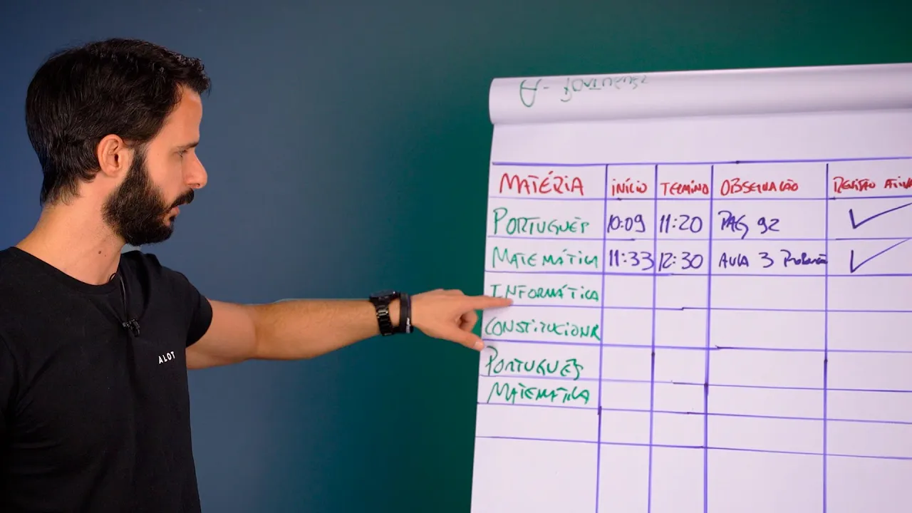 português vai estudar o segundo dia matemática o terceiro dia você estudar informática vamos pegar aqui constitucional no quarto dia o que que acontece Muitas vezes os poucos segunda-feira se estudar português e a gente foi lá estudou português e puxa se sentiu bem né estudar cumpriu que você determinou fazer gente se sentir bem e aí na terça-feira essa estudar matemática mas por algum motivo sei lá alguma coisa aconteceu e infelizmente você não conseguiu estudar matemática um compromisso alguma coisa eu tinha como estudar mesmo hein filho você não conseguiu estudar é tudo bem Você falou aqui no