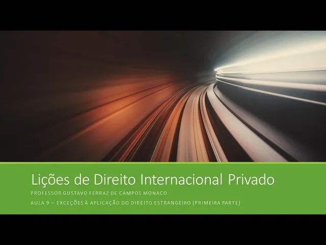 Ah E hoje nós vamos começar a analisar as chamadas exceções à aplicação do direito estrangeiro são basicamente quatro exceções e nós encontramos referenciadas pela doutrina e algumas delas como é o caso da ordem pública e nós vamos conversar na semana que vem são mencionadas explicitamente pelo legislador brasileiro outras como é o caso da fraude à lei e da instituição desconhecida e nós vamos conversar hoje São a construções doutrinárias e procura o explicar razões ou localizar razões que poderiam justificar uma correção e por parte do jogador da pessoa encarregada de decidir qual sob a égide de