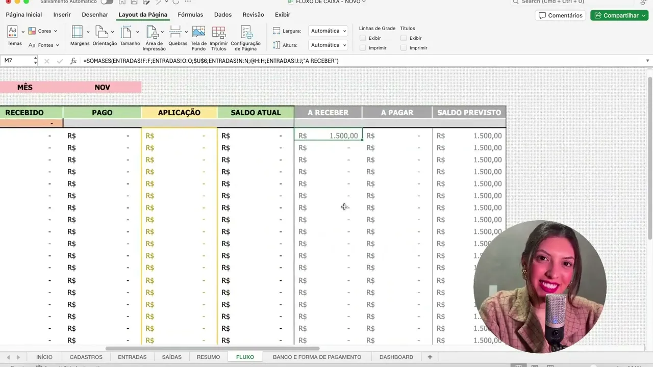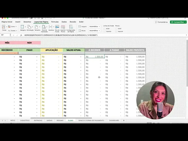 agora nós vamos para a aba do fluxo vamos lá como que funciona essa planid tá fantástica ela tá assim ela tá perfeita nenhum nível por quê Porque eu peguei a dor que eu senti por mais de um ano a dor que eu via alguns mentorados sentindo com a minha outra planilha e a gente reformou ela para ela ficar assim num nível fácil e claro então você literalmente só tem que lançar entrada e saída e todo o restante ela faz automaticamente para você E você tem vários tipos de visão Então você tem a visão por categoria por dia você vai ter a visão aqui por banco por forma de pagamento por mês tá top tá vendo aqui em cima em mês tem essa setinha quando você clica aqui em Janeiro por exemplo tem a setinha então se você mudar aqui ele vai mudar aqui embaixo por exemplo tá vendo em fevereiro não tem nada lançado certo mas se eu vi aqui em outubro tã tá lançado tá então é simplesmente assim que que eles vai que que nos traz aqui ele vai nos trazer por exemplo dia a dia então recebido pago o que foi aplicado e o saldo o que que é o saldo o saldo é o recebido menos o pago menos o aplicado é o saldo atual esse valor é o que é para ter na sua conta tá esse é o valor que é para ter na sua conta e aqui por exemplo no dia dois ele pega o saldo anterior mais o que entrou menos o que saiu menos o que foi aplicado ele te dá o saldo só que lembra que a gente também tem a opção de lançar a receber ou a pagar Então isso é uma coisa que assim eu queria muito conseguir enxergar pro meu negócio muito vamos supor que meu saldo hoje é R 1. 000 mas eu sei que eu tenho coisa para receber e eu sei que eu tenho coisa para pagar ainda nesse mês por exemplo será que vai dar Será que é o suficiente então assim PR você ter essa clareza tudo que você for lançando eu vou te dar um exemplo aqui no que tá montado vamos lá em novembro eu lancei que você tem para receber dia 1 de Novembro 1500 entende então o que que acontece seu saldo atual nesse caso tá zerado porque você não não recebeu e nem pagou nada ainda por exemplo em novembro Mas você já tem para receber 1500 então o seu saldo previsto é 500 e olha aqui embaixo já tem para sair 1. 00 então ele te mostra que de 1.
