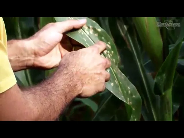 é uma medida recomendada principalmente em situações em que ocorre um elevado a pressão de doença decorrente da utilização de cultivares suscetíveis e de condições climáticas favoráveis ao desenvolvimento das doenças então é seria de uma maneira geral as principais estratégias de manejo para as doenças do milho no Brasil Olá pessoal essa aqui Essa é uma das principais doenças que atacam a cultura do milho no Brasil é chamada mancha branca os sintomas característicos dessa doença são a produção de a formação de lesões nos estágios iniciais de coloração verde-oliva que a gente chama de anasarca essas lesões evoluem