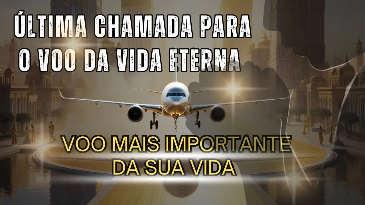 senhores passageiros com destino à vida eterna Esta é a última chamada por favor dirijam-se ao portão de embarque S trazendo consigo o passaporte que comprova que vocês aceitaram Jesus como o único e suficiente Salvador informamos que toda a bagagem deve ser deixada para trás riquezas carros casas apartamentos assim como joias e adornos cada passageiro poderá levar apenas as almas que trouxe para o reino de Deus Desejamos a todos uma excelente viagem quem fala é o Comandante João e é um prazer recebê-los a Bordo deste voo para a vida eterna Esperamos que desfrutem de uma viagem