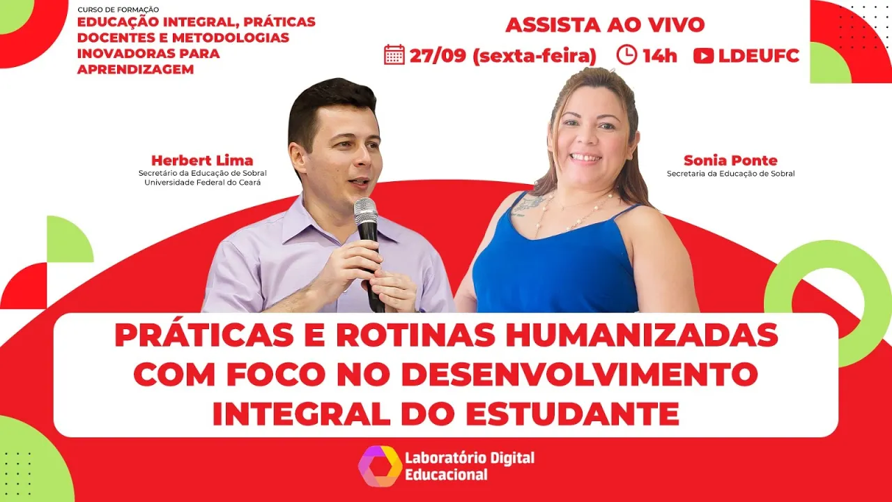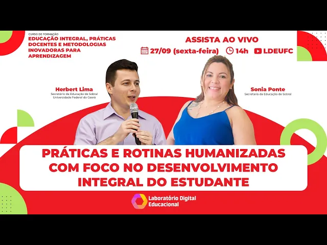 esse curso ele é gratuito e 100% online voltado para gestores professores técnicos da Educação Básica e do ensino superior de instituições públicas e privadas e demais interessados pela temática as aulas acontecem sempre às sextas e aos sábados das 14 às 17 horas ao vivo neste canal aqui no YouTube do laboratório digital Educacional e para hoje teremos uma palestra com Sônia ponte da Secretaria da Educação de Sobral seja bem-vinda Sônia obrigado por ter aceito o nosso convite Boa tarde Boa tarde Vil Boa tarde a todos e a todas me chamo Sônia ponte Eu sou uma mulher