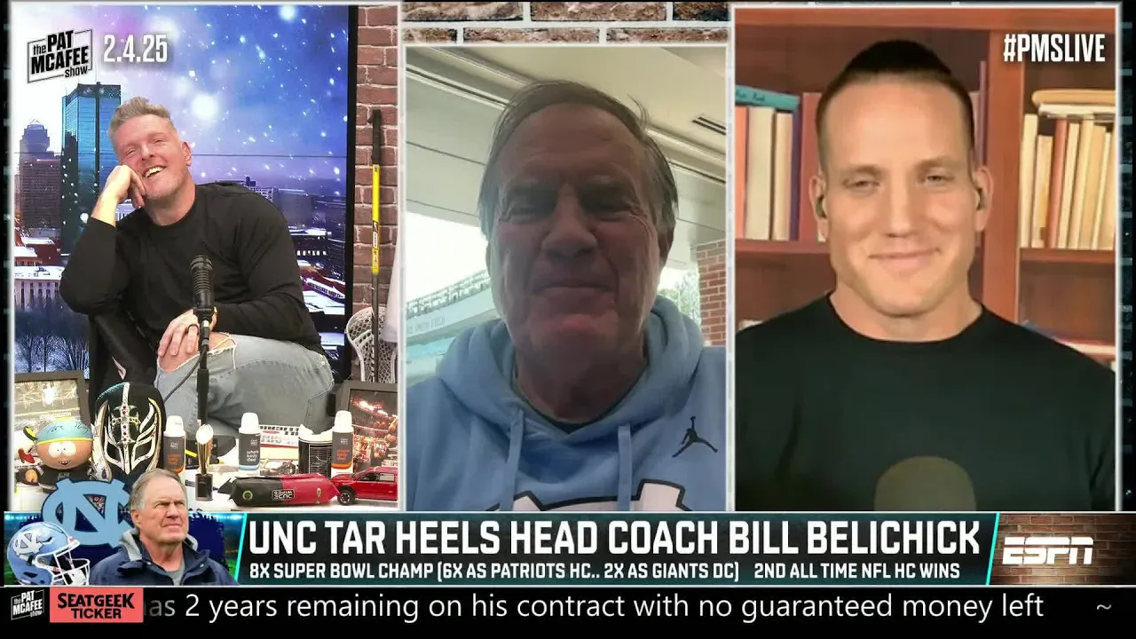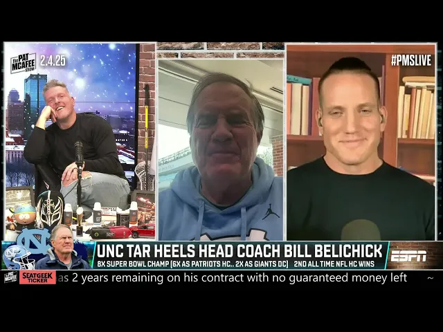 the Navy and then you talk about going through the coaching rank starting with the Giants and then getting an opport forever that's all he did ball b ball and the other thing he did I assume a guy's going to win for the Tar Heels as their head coach Bill belich yeah Bill Co how you doing coach good ayj how you guys doing crew how we doing hey Bill hey Bill super week super it's a great week it's a great week hey um okay so I know that you wrote this didn't have a ghost writer um