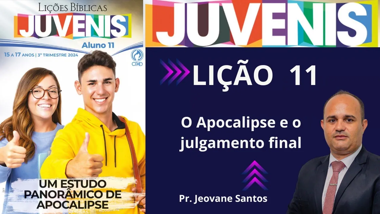 a paz do Senhor meus queridos amados irmãos sejam todos bem-vindos ao nosso canal descomplicando a teologia e você já sabe chegou o momento da nossa aula com dinâmica da revista dos juvenis Já estamos na lição de número 11 do terceiro trimestre de 2024 quee traz por título O Apocalipse e o julgamento final Eita glória já pode preparar viu crente porque aqui o alimento é forte mas se você é novo por aqui não me conhece eu sou sou pastor Geovane Santos sou filiado a cadb e também cgadb e para mim é o privilégio poder contar com