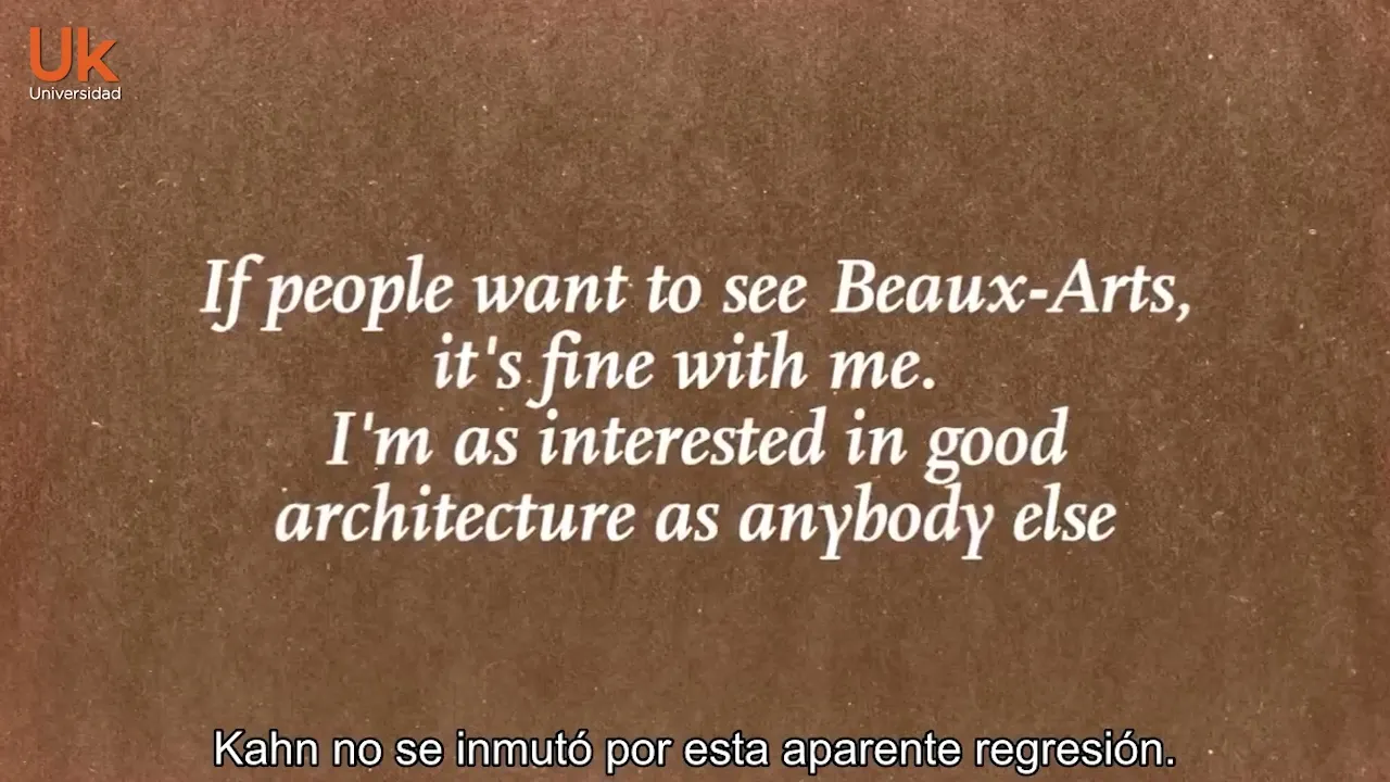Innovation and Clarity of modernism he reminded the modernists that they could be in dialogue with their most illustrious predecessors One symptom of the successful Rehabilitation of the old was Khan's affection for symmetry which many modern Architects had come to view as authoritarian unimaginative and conformist Khan designed the salt Institute in La Jolla California as a complex of buildings identical on either side of a central Fountain a symmetry characteristic of what is known as the bozar style Khan was unperturbed by this apparent regression if people want to see bizarre it's fine with me he said I'm