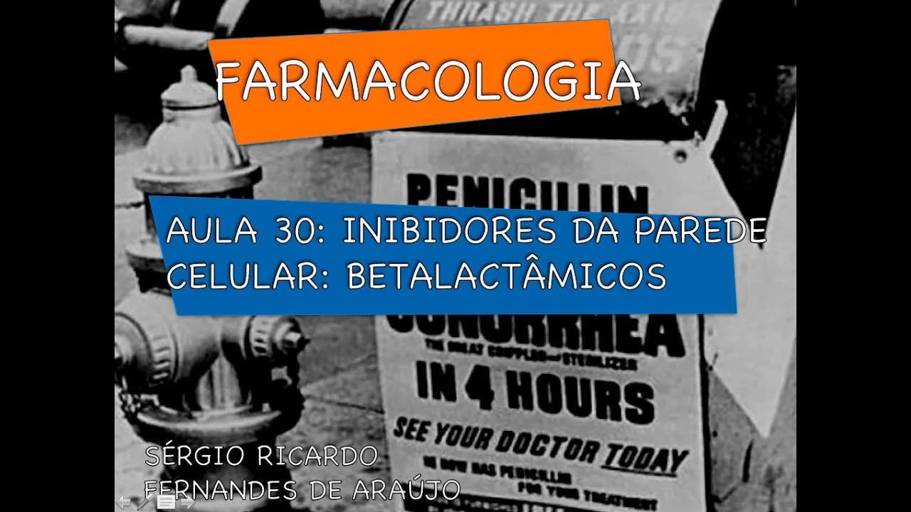 Na aula de hoje veremos é os inibidores da parede celular, destacando principalmente os betalactâmicos. No final da aula, falaremos um pouquinho também sobre os glicopeptídeos, OK? Então, nessa aula, nós descreveremos as características gerais dos antibióticos betalactâmicos.