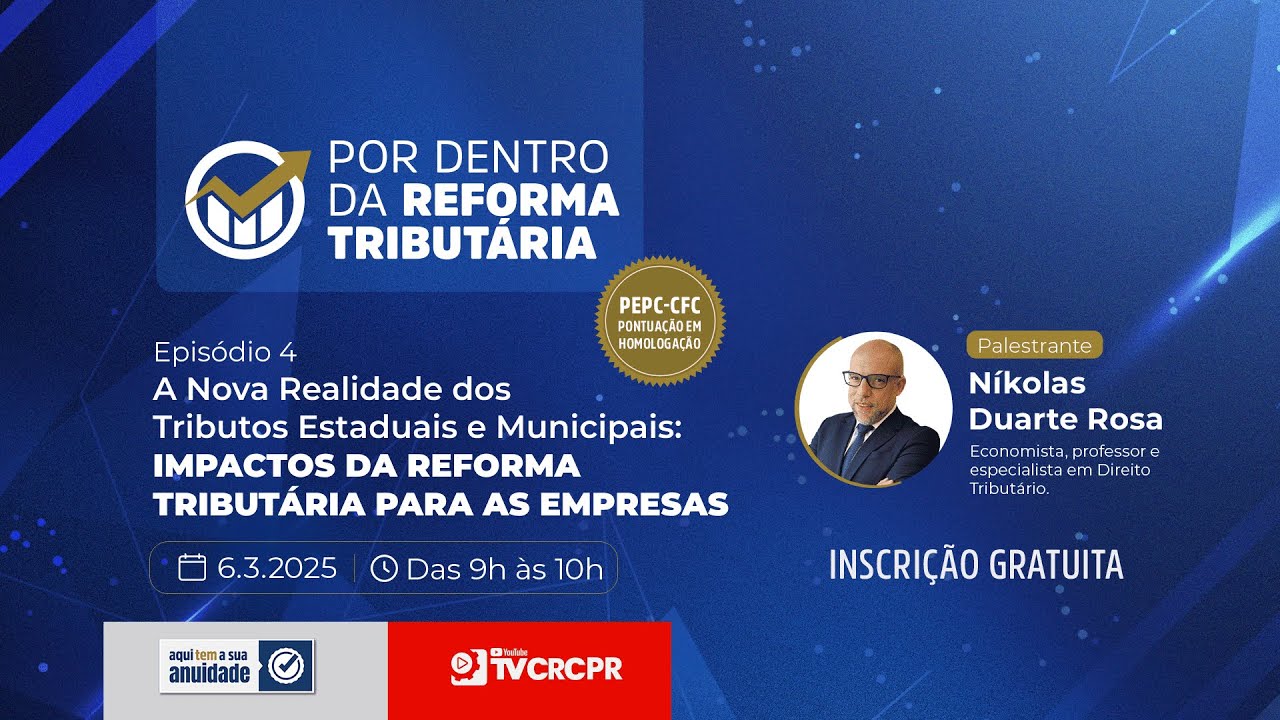 [Música] h [Música] [Música] k [Música] [Música] [Música] [Música] [Música] [Música] Olá sou Laudelino yor vice-presidente desenvolvimento profissional do Conselho Regional de Contabilidade e hoje estamos felizes porque estamos lançando mais um programa de qualificação para você contador contad técnica de contabilidade do Estado do Paraná e claro desta vez nós vamos falar da reforma tributária vamos lançar hoje para você por dentro da reforma tributária Por que nós Demoramos um pouco para lançar esse programa que nós queríamos primeiro que a reforma tributária pudesse caminhar e já estar no chegando ao final da primeira fase pelo menos da reforma