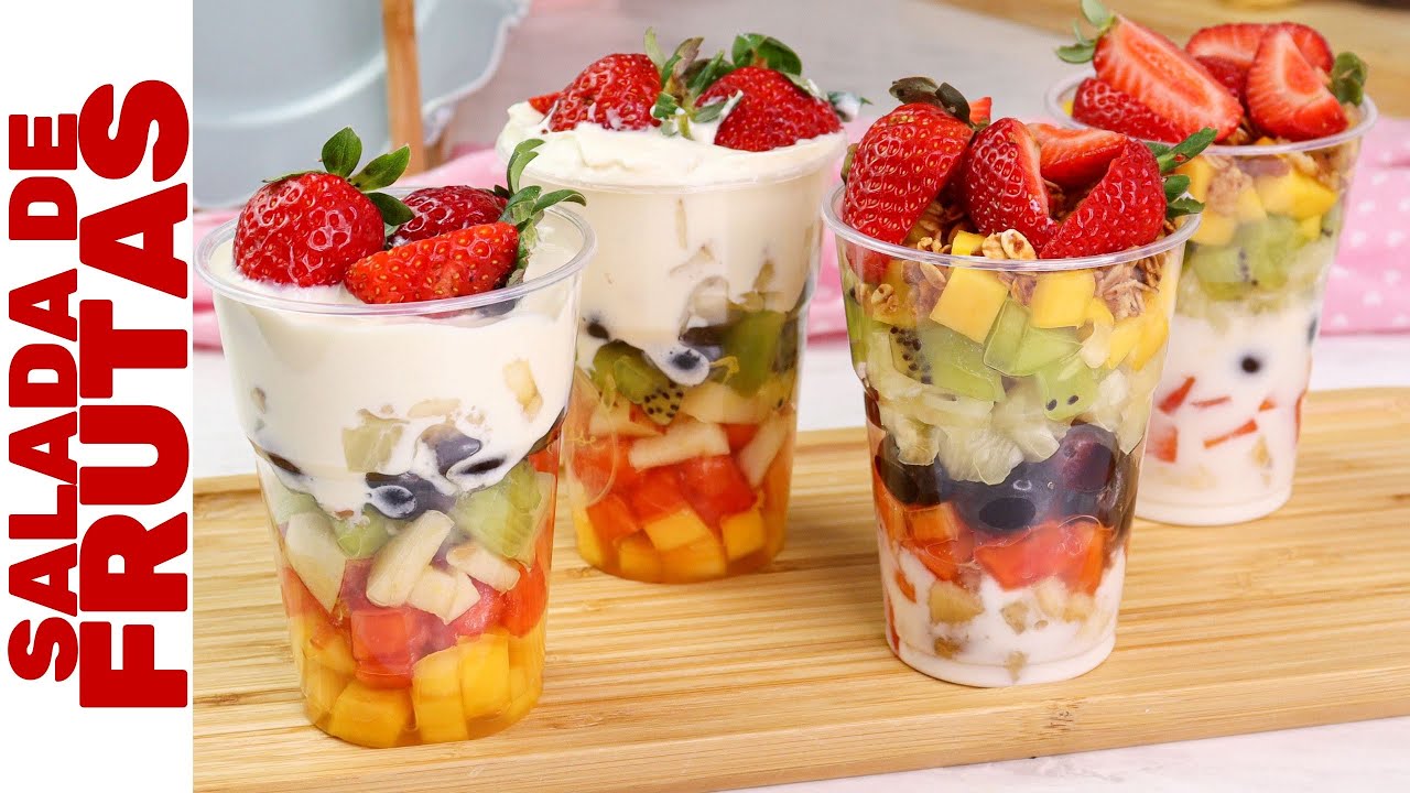 muito bem [Música] e para a gente começar a colocar as frutas né O que a gente for colocar aqui em cima é bom que a gente espera uns 15 minutinhos que é para dar uma enxada né para ficar mais consistente as frutas não descerem mas pode colocar assim também não tem problema não tá bom gente mas aí eu vou montar os outros copinhos e depois a gente vai começar a fazer a montagem das frutas [Música] e as frutas que nós iremos utilizar são essas daqui tá gente aqui eu tenho bananas tem mangas uvas e morangos