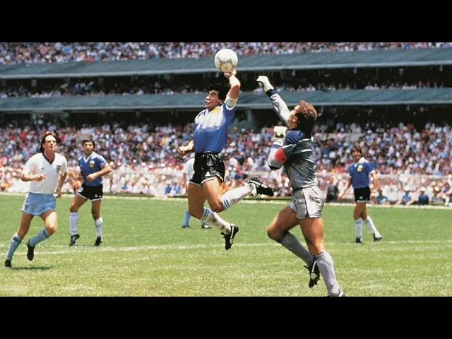 era começo do segundo tempo o jogo tava zero a zero quando o rolo lance ali perto da área da Inglaterra os agrião em inglês manda a bola para trás em direção ao goleiro e o Maradona vai disputar só que Maradona todo mundo sabe era baixinho né então ele vai disputar ele sobe para ganhar maior de cabeça não alcança mete o bracinho o e feche os olhos tem uma foto sensacional que é ele que o Brasil aqui com os olhos fechados assim ó como que quem torcia para que desse certo sem saber o que aconteceria e