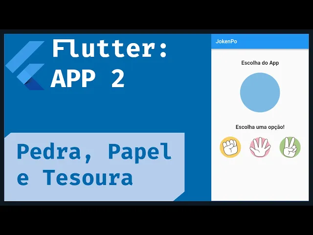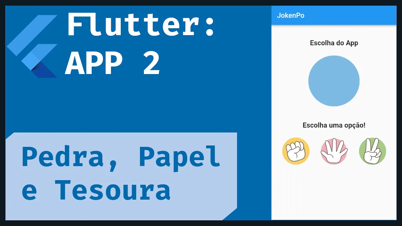 agora que aprendemos a utilizar os componentes básicos de interface utilizando flutter vamos estar desenvolvendo mais um aplicativo com base nesses conhecimentos que a gente adquiriu até então o aplicativo que a gente vai estar desenvolvendo nesse vídeo é o aplicativo do jogo pedra papel e tesoura ou Joaquim Pou se você ainda não viu os vídeos anteriores onde eu mostro como utilizar cada um desses vídeos de shake vai estar usando nesse vídeo que eu recomendo que você pausa esse vídeo e assista a parte 1 e a parte 2 dos componentes de interface do flat que eu tô