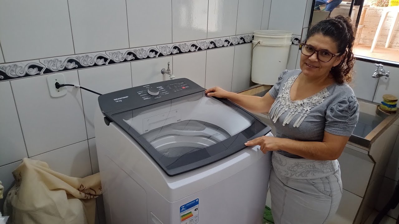 I'm Flávia and this is my social media and you're watching "A Dica do Dia". [music] The first thing to take into account is the washing machine capacity. This one is a regular capacity washer with 16Kg.