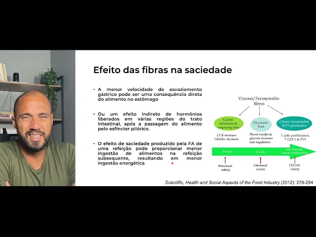 fibras sobre a saciedade e esses efeitos pode ser entra as refeições né durante a refeição na verdade entre as refeições e crônico certo por exemplo a distensão gástrica e e o retardo no esvaziamento durante a refeição ocasion para uma refeição e estimula faz o seu o seu intestino o seu est aumentar na verdade a suas seu trato G intestinal como aumentar a secreção de cck por exemplo col associada a saciedade redução de grelina isso aumenta a sua sensação de saciedade durante a refeição você tem um melhor controle glicêmico e insulinico também que está associado a