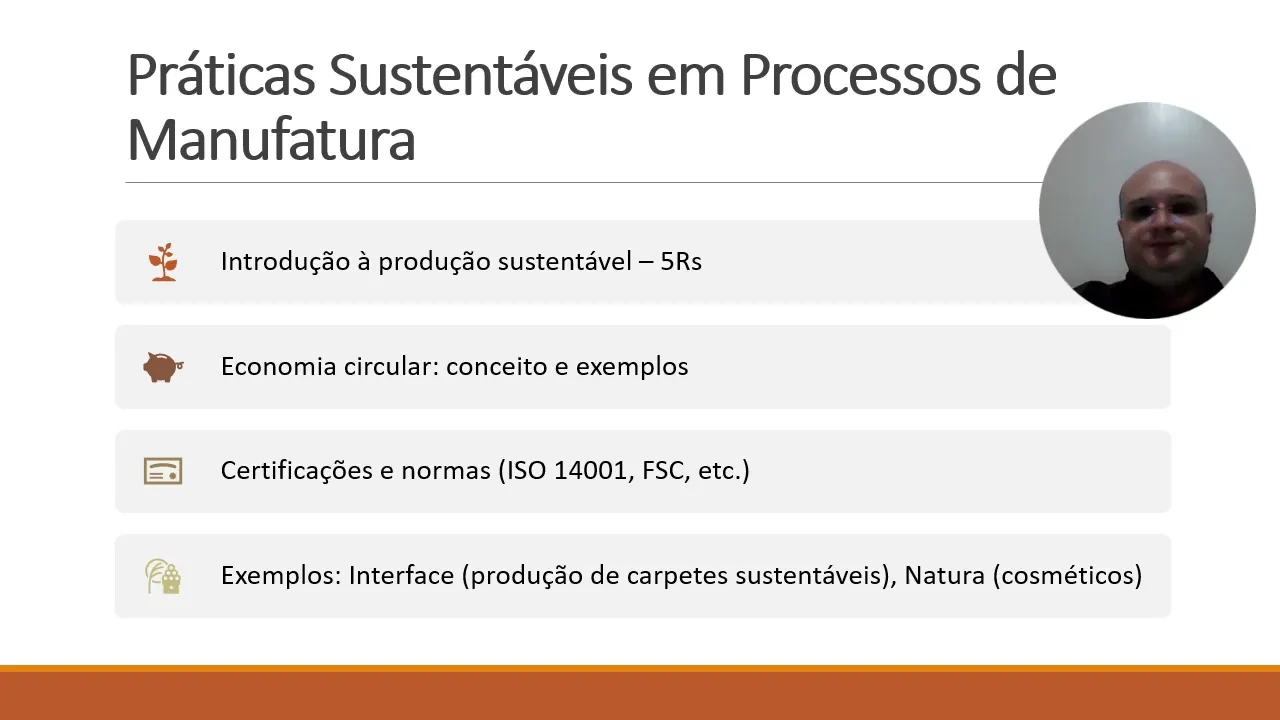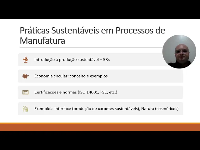 Olá saudações a todos eh sou o professor Rafael vamos aqui pra nossa unidade qu da disciplina de gestão da inovação e produtos serviços e processos vamos aqui com a última videoaula para contemplar o conteúdo aí que foi apresentado no plano de ensin tá então essa unidade ela leva em consideração Pessoal a questão da utilização da sustentabilidade nos processos aí de manufatura isso leva em consideração também vai mais a diante n não só na construção de Novos Produtos mas também na quando for prestar serviços ou até mesmo realizar algum tipo de Esso Então essas práticas sustentáveis