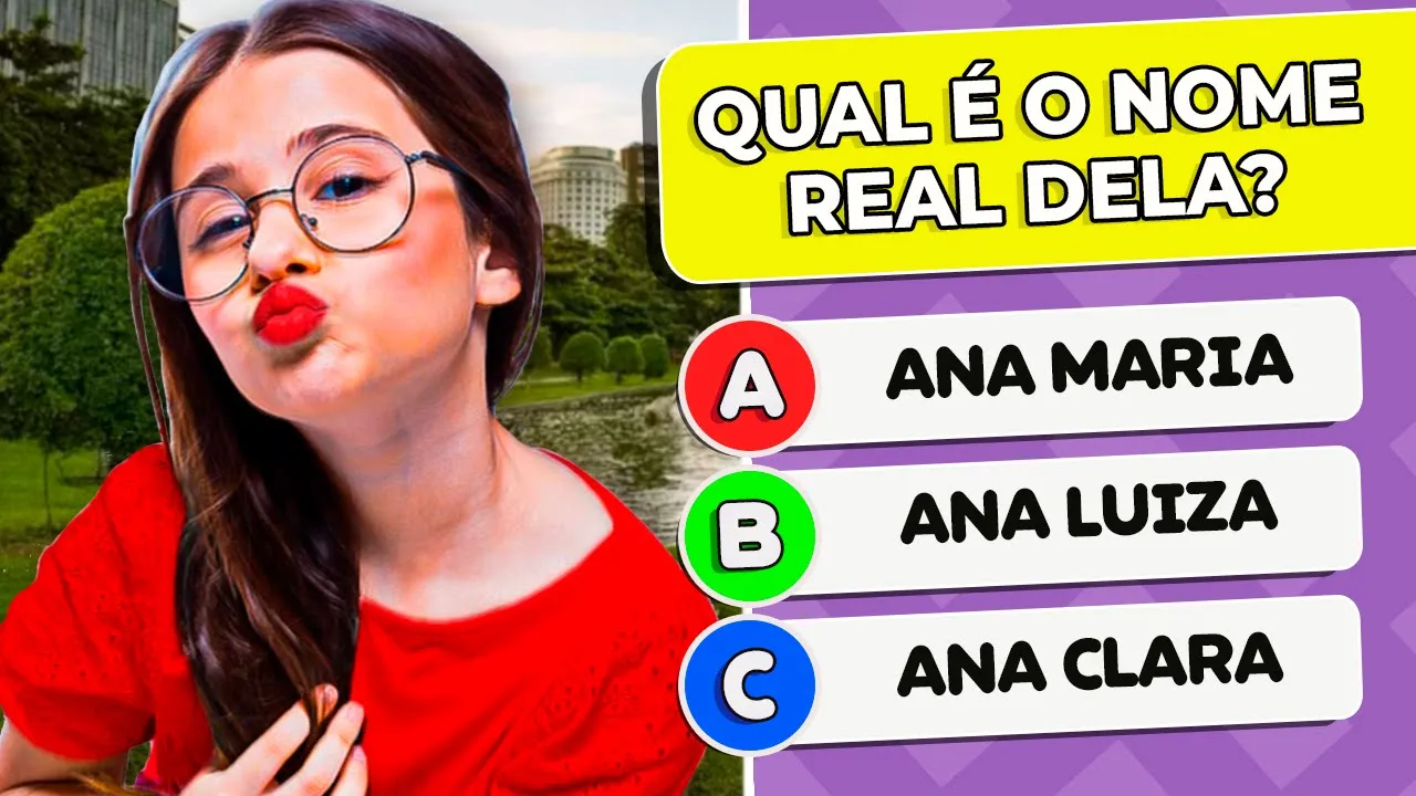 para completar a imagem está bem aqui Quiz número 6 qual é o título do seu primeiro vídeo postado no YouTube a resposta certa é a letra B Quiz número 7 Qual é a idade da Aninha a resposta certa é a letra A Quiz número oit encontre as palavras estão bem aqui Quiz número n Quais são os olhos verdadeiros a resposta certa é a letra C Quiz número 10 qual é a data de aniversário da Aninha a resposta certa é a letra B Quiz número 11 Qual é a imagem correta a imagem correta é a dois