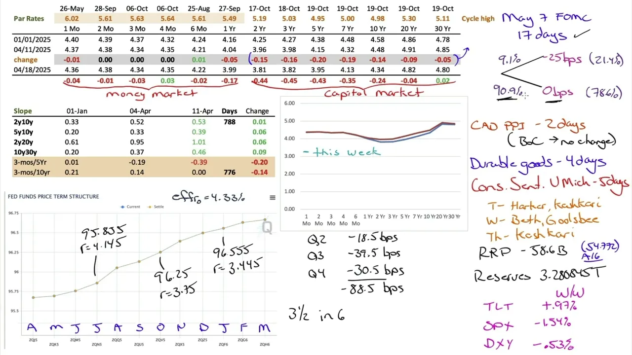 dropped 14 basis points for uh the week ahead what do we got canadian PPI in two days uh last week Bank of Canada made uh no change so I don't see this as being important but there it is it might affect the currency but uh I don't think by much durable goods for the US in four Days that'll be uh interesting to look at i think once we start getting some of the April data in that has the effect of the tariffs both the real effect for however long some have been in place and the