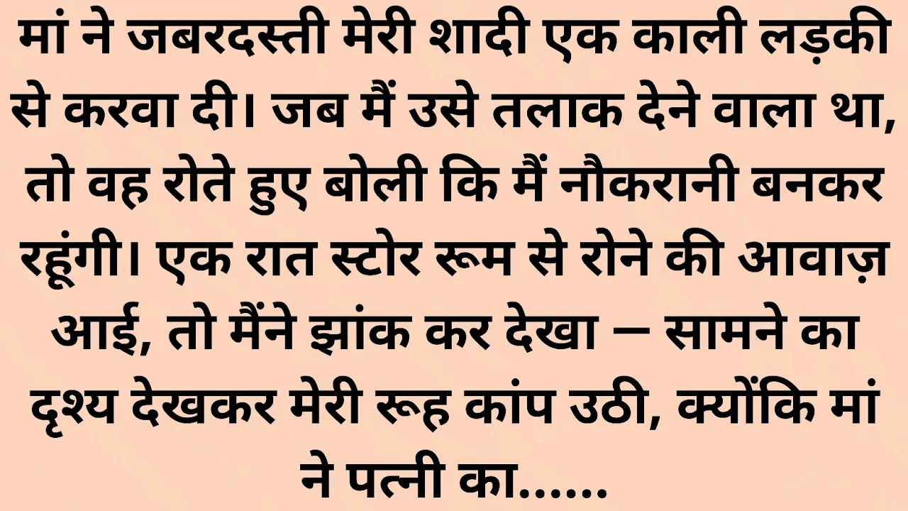 शादी की रात जब मैंने अपनी बीवी का काला चेहरा देखा तो मैं बहुत नाराज हुआ। जब मैंने उसे तलाक देने की ठानी तो वह मेरे पैरों में गिर पड़ी और बोली आप दूसरी शादी कर लीजिए। मैं घर के किसी कोने में पड़ी रहूंगी। मैंने एक खूबसूरत औरत से शादी की और उसे घर ले आया। पहली बीवी नौकरानी बनकर उसकी सेवा करने लगी। घर में सभी खुश थे क्योंकि उन्हें मुफ्त की नौकरानी मिल गई थी। लेकिन एक रात अचानक मैं बाहर खड़ा। खामोश निगाहों से अपने घर के दरवाजे को देख रहा था। ना जाने क्यों आज