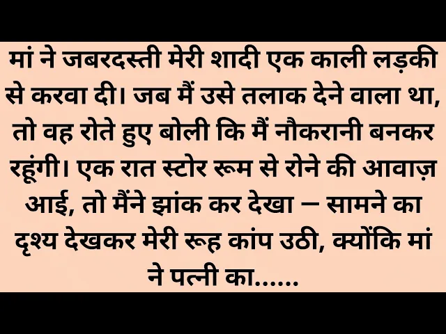 भीतरी होती है जो त्याग, सेवा और मुस्कान में बसती है। तो दोस्तों, यह थी आज की कहानी। इस कहानी के बारे में आपकी क्या राय थी? यह कमेंट बॉक्स में जरूर बताइए। अगर आपको कहानी पसंद आई हो तो वीडियो को लाइक करें और स्टोरी कॉर्नर चैनल को सब्सक्राइब करें और बेल आइकन पर क्लिक करके इसे ऑल पर सेट करें ताकि आपको नए वीडियो की सूचना तुरंत मिल जाएगी। धन्यवाद।