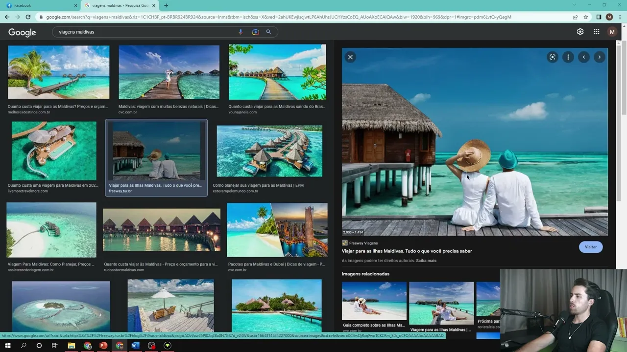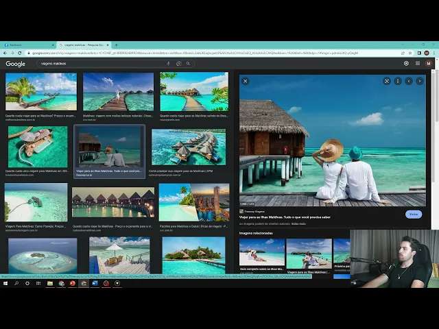a mensagem falando que a página foi criada página criada e agora a gente vai dar qualidade essa página vai adicionar uma foto de perfil uma foto de capa isso aqui cara você pode pegar tudo no Google de maneira bem simples também então foto de perfil colocar aqui no Google viagens Maldivas tive uma foto aqui cara eu vou pegar essa foto aqui eu vou salvar a imagem aqui já vou aproveitar também e vou baixar uma foto de capa para minha fanpage capa Facebook Então deixa eu ver acho que tá legal salvar imagem pronto então agora vou